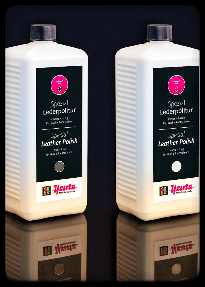 Speciale schoencrème van Heute, verkrijgbaar in KLEURLOOS (aanbevolen) of in ZWART.