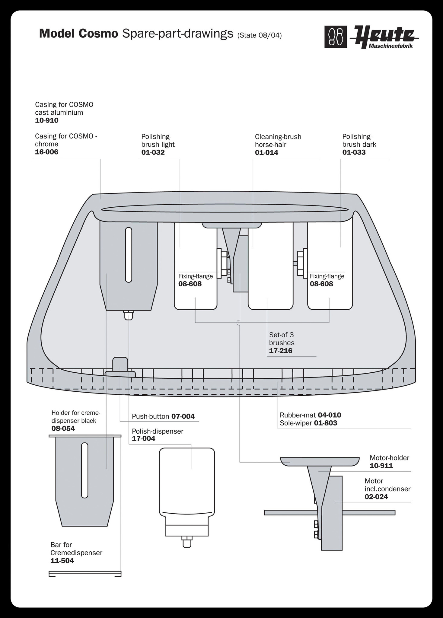 Het Duitse merk Heute maakt al sinds 1905 machines voor het onderhoud van schoenen. Om deze Duitse kwaliteit te benadrukken garandeert dit bedrijf dat er 20 jaar na aankoop nog steeds reserveonderdelen beschikbaar zijn voor de geproduceerde schoenpoetsmachines.