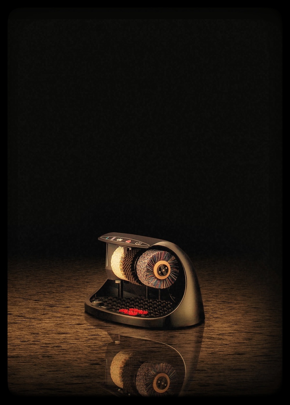 De Cosmo-serie bestaat uit machines met een prachtig design met een behuizing van aluminium en is met zijn bescheiden maatje nét iets groter dan ons kleinste model. De variaties in kleur zijn: Black, Graphite, Silver, Light Ivory, White, Blue en Bordeaux. Welk kleurig design geeft jouw schoenen meer shine?