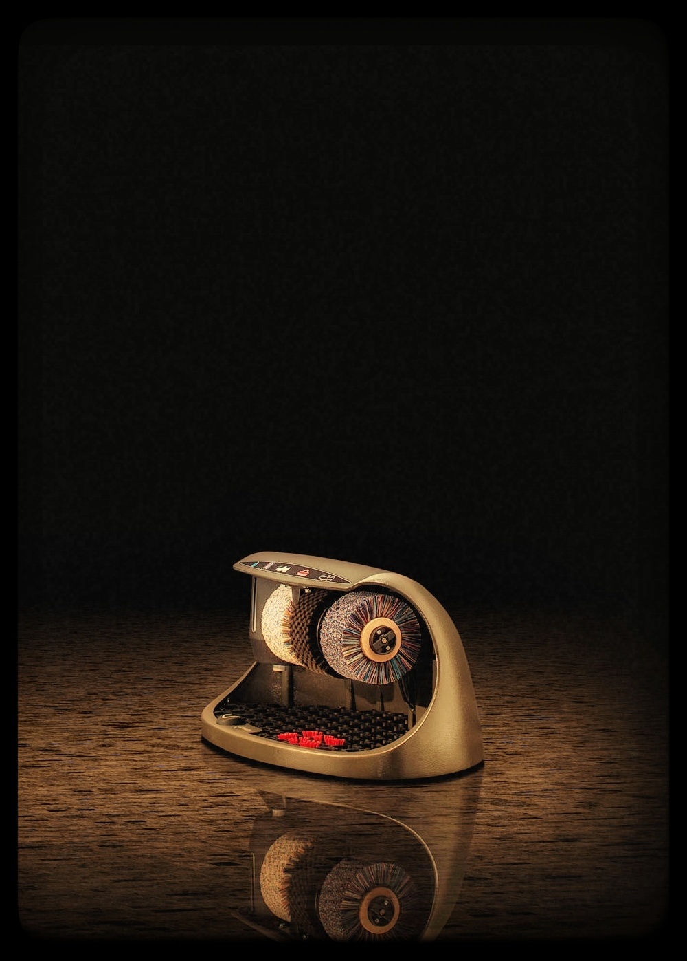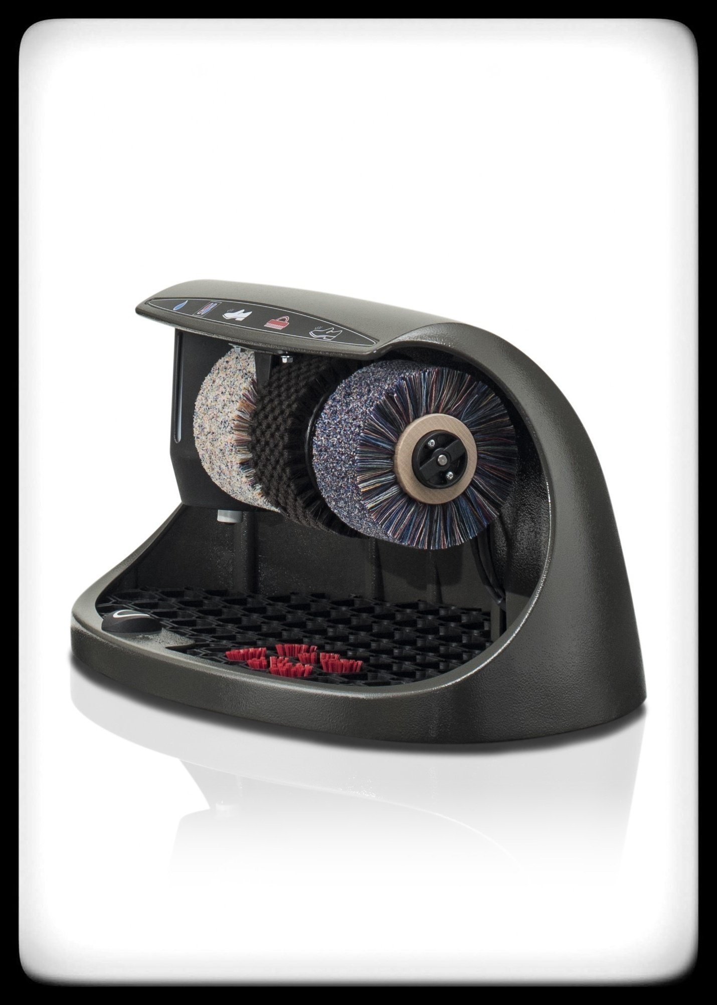 Iedere SPM beschikt over drie borstels: in het midden een ruwere schoonmaakborstel, en aan de zijkanten zachtere (polijst)borstels om de schoenen te laten glanzen. De kleur van de (leren) schoenen die je draagt bepaalt of de donkere of lichte polijstborstel het meest geschikt is om te gebruiken. Iedere SPM wordt geleverd met een dispenser (links van de borstels) voor schoencrème en een sensor met een timer.
