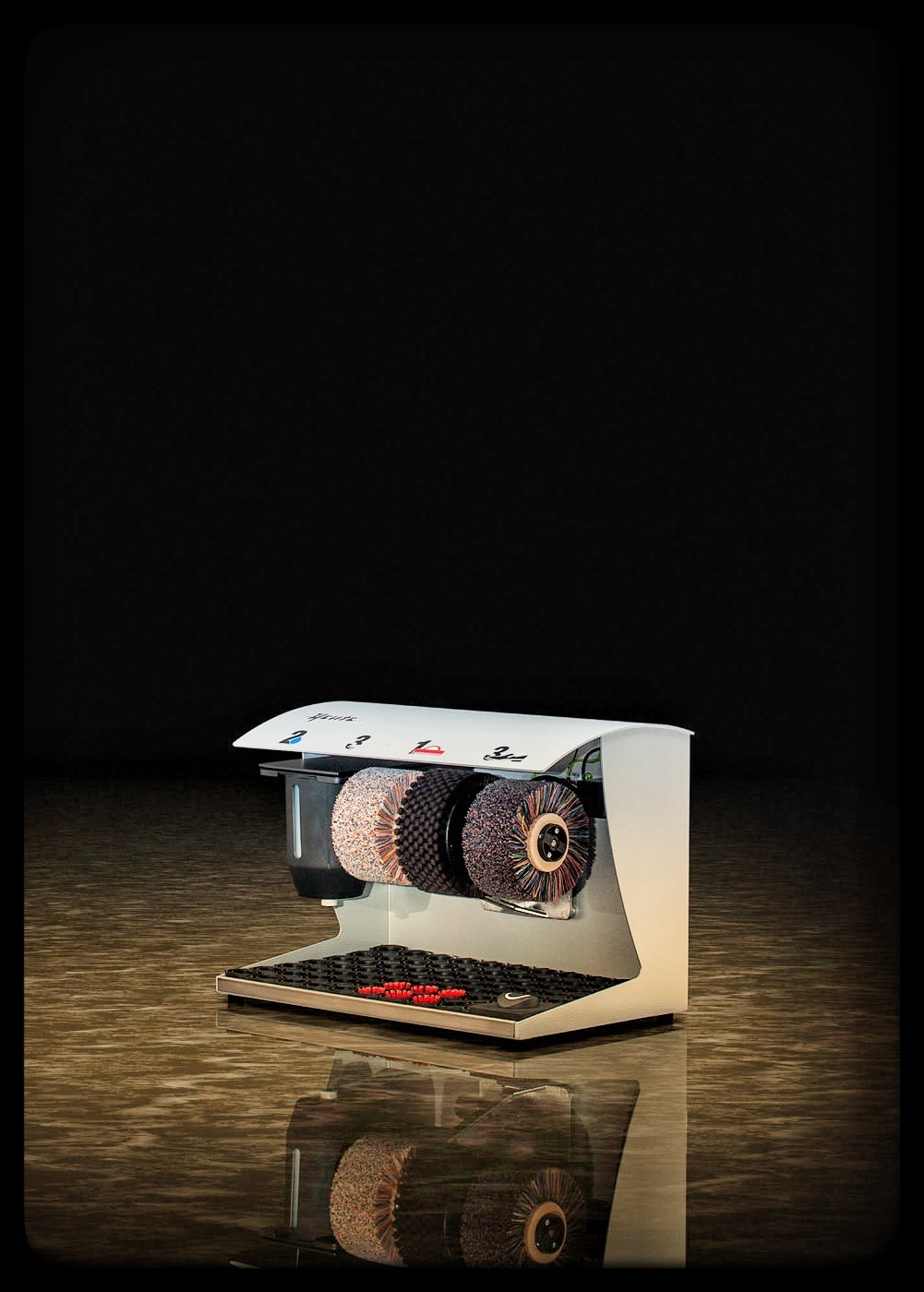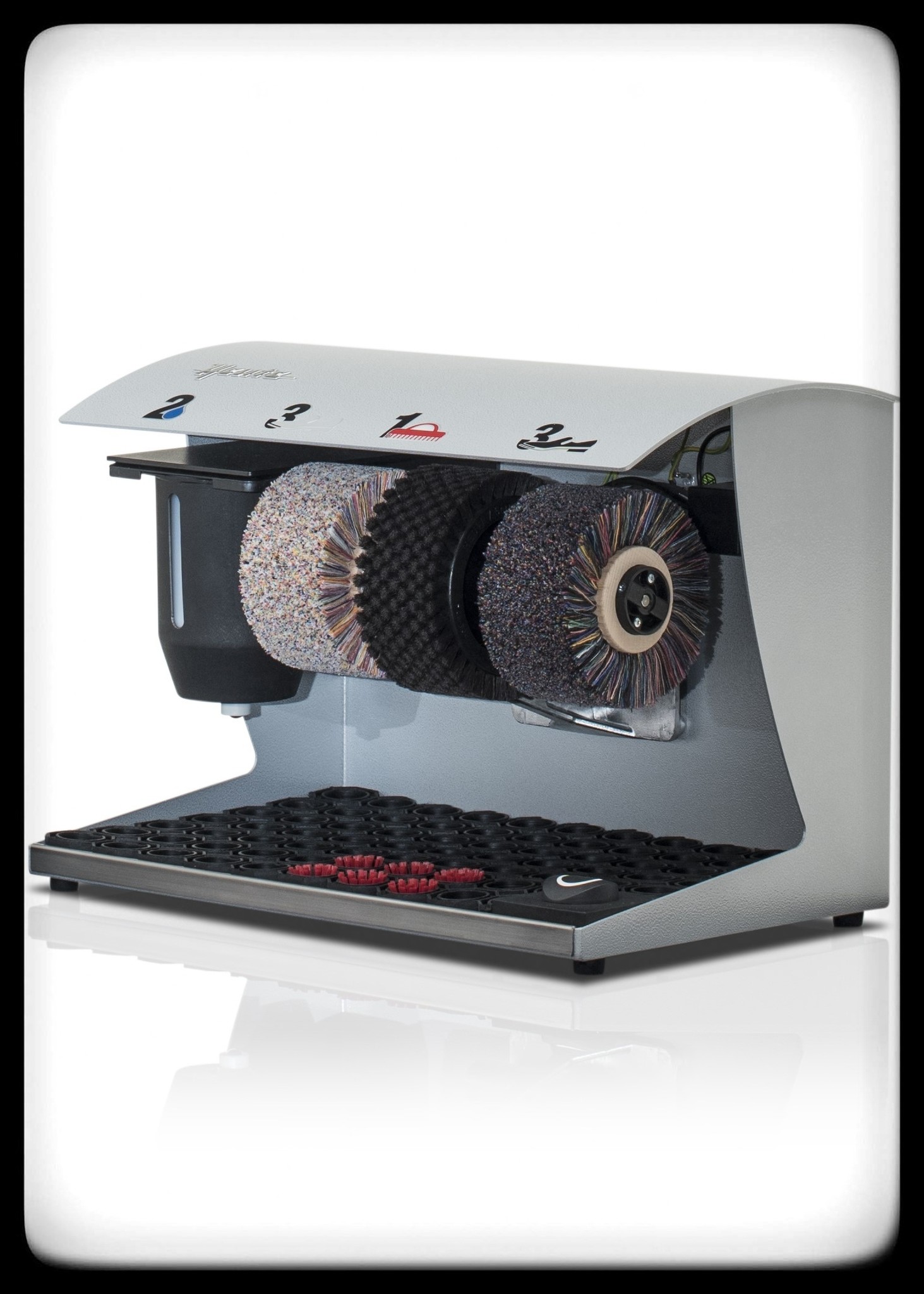Iedere SPM beschikt over drie borstels: in het midden een ruwere schoonmaakborstel, en aan de zijkanten zachtere (polijst)borstels om de schoenen te laten glanzen. De kleur van de (leren) schoenen die je draagt bepaalt of de donkere of lichte polijstborstel het meest geschikt is om te gebruiken. Iedere SPM wordt geleverd met een dispenser (links van de borstels) voor schoencrème en een sensor met een timer.