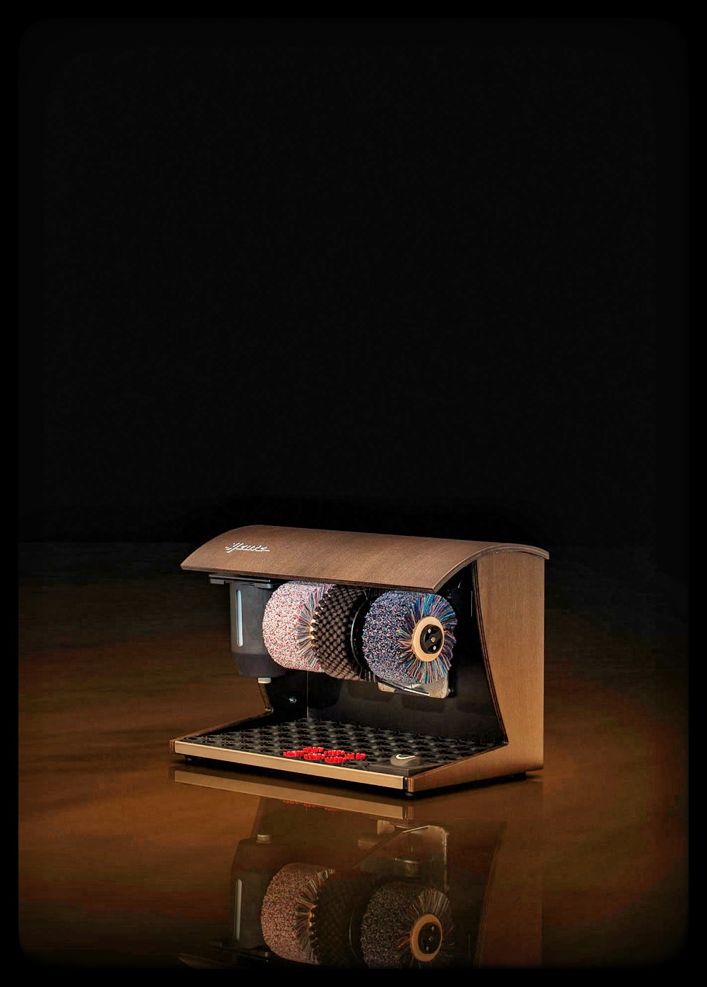 Iedere SPM beschikt over drie borstels: in het midden een ruwere schoonmaakborstel, en aan de zijkanten zachtere (polijst)borstels om de schoenen te laten glanzen. De kleur van de (leren) schoenen die je draagt bepaalt of de donkere of lichte polijstborstel het meest geschikt is om te gebruiken. Iedere SPM wordt geleverd met een dispenser (links van de borstels) voor schoencrème en een sensor met een timer.