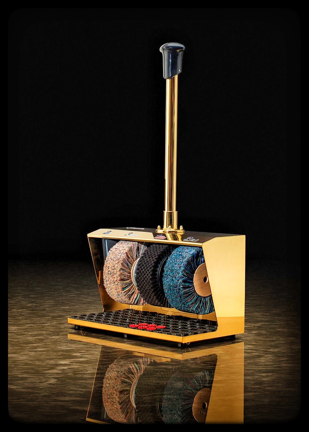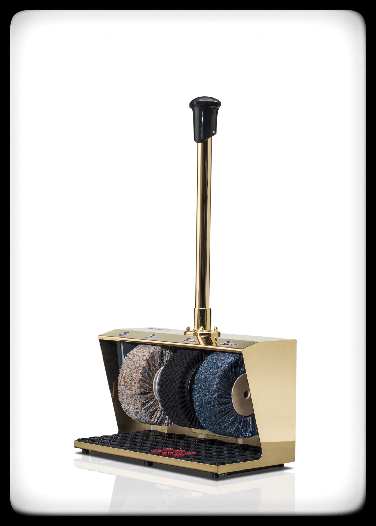 De serie Polifix 2 bestaat uit machines met een sterke stalen behuizing met drie grote borstels. De Polifix 2 is geschikt voor intensief gebruik en wordt geleverd met handvat, inclusief startknop. Van de collectie is dit model ruimschoots de grootste en is dan ook tevens geschikt voor plaatsing in een grotere ruimte. De variaties in kleur zijn: Chrome, Satin V2A Housing, Graphite, White en 24 Karat Gold Coated. Ons topmodel 24 Karat Gold Coated is met verve ons kroonjuweel! Welke uitstraling past bij jou?