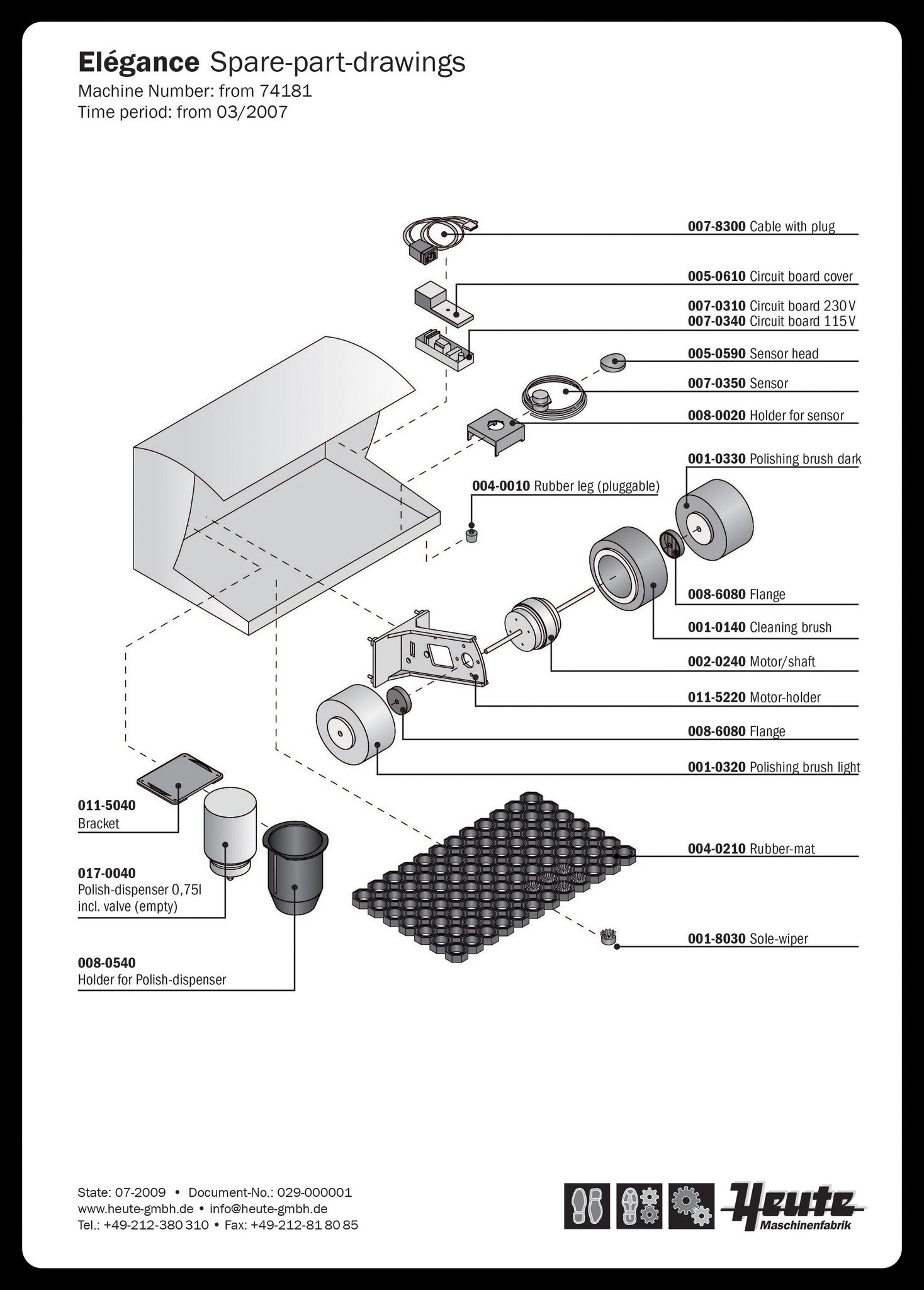 Het Duitse merk Heute maakt al sinds 1905 machines voor het onderhoud van schoenen. Om deze Duitse kwaliteit te benadrukken garandeert dit bedrijf dat er 20 jaar na aankoop nog steeds reserveonderdelen beschikbaar zijn voor de geproduceerde schoenpoetsmachines.